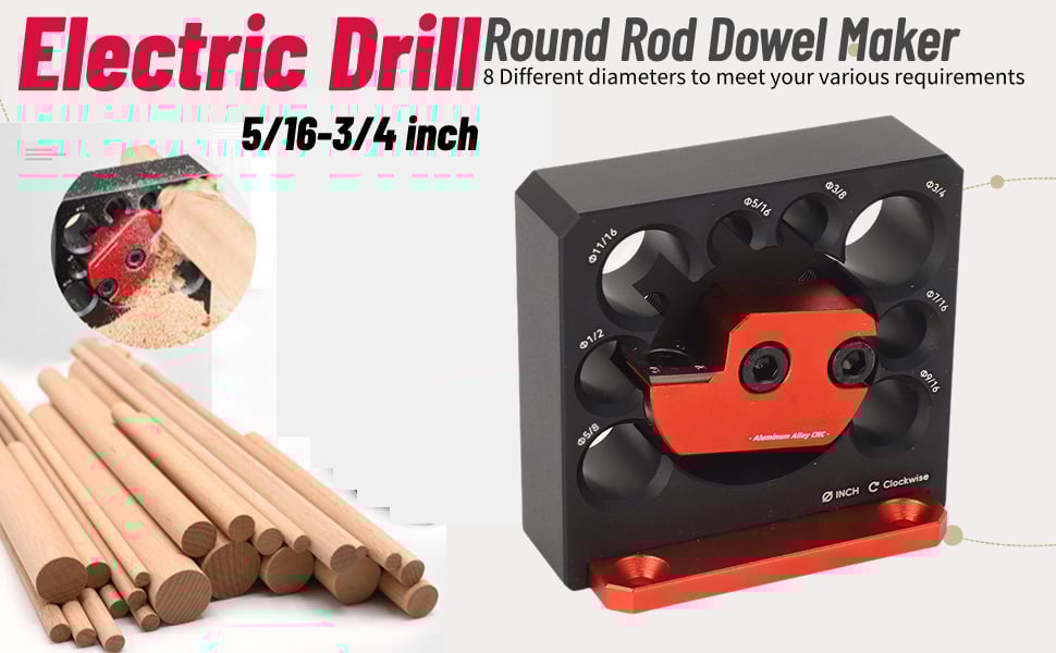 Comfortable and provides a long service life.rning Holes : The dowel maker jig is adjustable and comes with eight different diameter turning holes. By loosening the screw and rotating the red tool holder, you can easily set the desired diameter for your dowels.